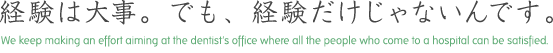 経験は大事です。しかし、当院では未経験であっても『患者様にどうすれば喜んでいただけるのかを考え、一生懸命努力していただける』思いやりをお持ちの方を歓迎いたします。